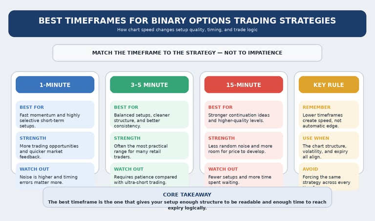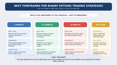 That is also why this subject connects closely with How Volatility Affects Binary Options Trade Timing and How to Read Market Conditions Before Entering a Binary Options Trade. A timeframe that works in a stable trend may become much less reliable when volatility becomes erratic or when the market turns choppy.