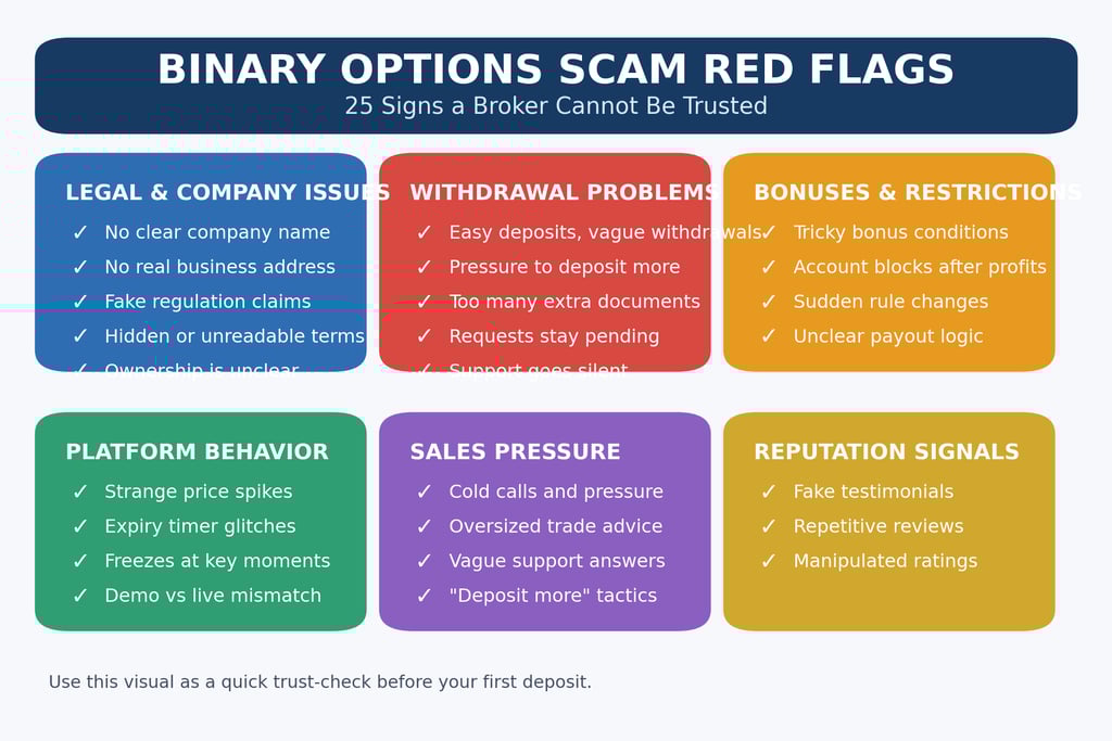 Binary Options Scam Red Flags: 25 Signs a Broker Cannot Be Trusted