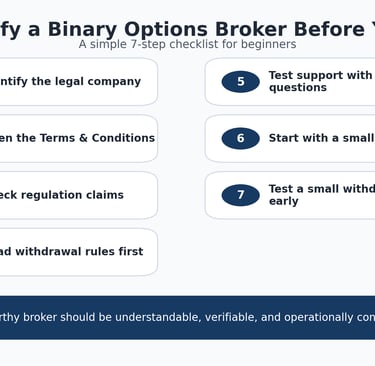 The best way to avoid a binary options scam is to slow down before funding an account. Most scam signals appear early, but traders often ignore them because the platform looks polished, the payout seems attractive, or a sales representative sounds convincing.