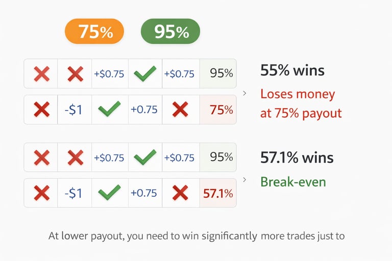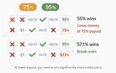A trader with a 55% win rate will still lose money at a 75% payout.