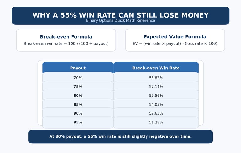 Why a 55% Win Rate Can Still Lose Money in Binary Options